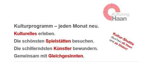 Auf dem Haaner Kulturfest am Sonntag, 08.08., – „umsonst und draußen“ – verlost der Kulturring Haan e.V. kostenlose Tickets...
